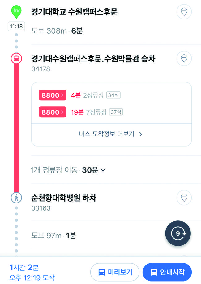 First, you should take bus No. 8800 from the Kyonggi University stop.