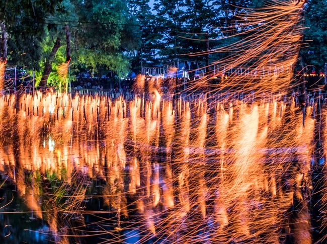 A traditional fireworks festival, where thousands of sparks turn a pond red, has recently become popular. It is called ‘Nakhwanori,’ which is one of Korea’s traditional folk games. These are traditonal fireworks where ‘nakhwabong’ are made by putting charcoal powder into hanji(Korean traditional paper) and twisting it around cotton cloth as a wick, which is then strung up and lit. Mainly, nakhwabongs are hung on iron wires or bamboo sticks. When they are lit, the sparks scatter down, creating a scene that resembles flower petals falling. This festival is usually done over water, and is held the first moon of the lunar new year and on Buddha’s Birthday. The Nakhwanori festivals in Haman and Muju Anseong are especially famous. It has gained even more popularity recently. Now Pharos is going to learn about the history and famous locations of Nakhwanori.