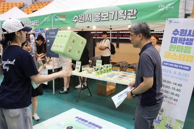 수원시와 제3기 수원시 대학생 협의회가 함께 준비한 ‘2025 대학생 연합 페스티벌 수페리얼’이 지난 6일 개최됐다. 해당 축제는 ‘수원시 페스티벌 리얼(real) 재밌겠다’라는 의미를 담고 있으며 △본교 △아주대학교(이하 아주대) △성균관대학교(이하 성균관대) △동남보건대학교 △수원여자대학교가 참여했다. 이는 해당 대학교 학생들과 외국인 유학생이 함께 소통하고자 기획됐으며, 유학생들이 운영하는 부스를 통해 다양한 문화를 체험할 수 있었다. 해당 축제에서 수원시 대학생 협의회장을 맡은 본교 제38대 내일 총학생회 박진형(산업경영공학·4) 회장은 “대학을 넘어 수원이라는 도시에서 학생들이 하나로 연결되고 소통할 수 있는 장을 만들어 보고 싶었다”며 “앞으로도 본 축제가 수원 대표 청년 축제로 자리 잡길 원한다”고 전했다.