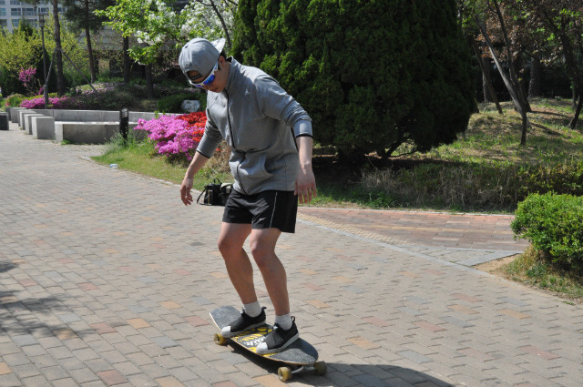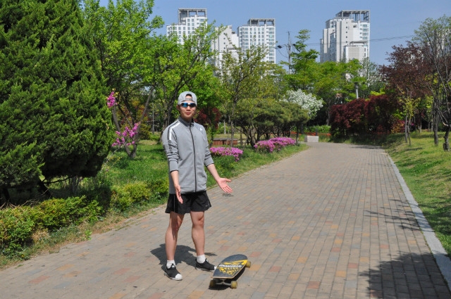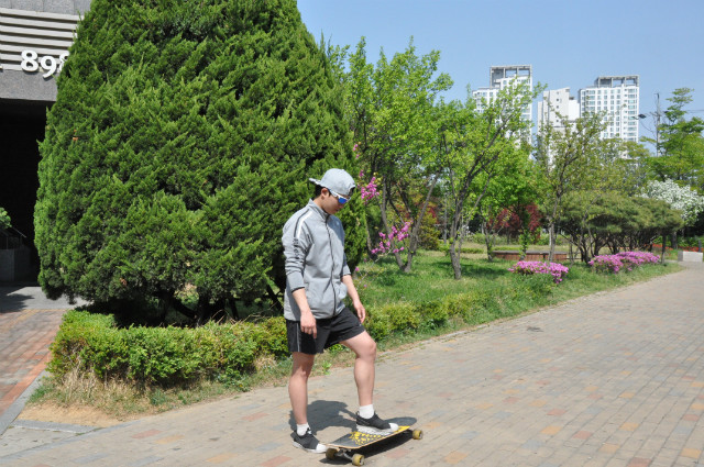 Can you guess what a long board is? Some may know, some may not. Long board is a kind of skateboards and literally means a long board (A board which has a long length). Long board was first considered by Hawaiian surfers in late 1940 because they wanted to feel like they were surfing on the ground even if they did not go to the ocean. In 1959, the first long board was for sale in Hawaii. It is not as famous as skateboards because of its low awareness but a few long boarders and snowboarders who cannot ride snowboards due to hot summer have steadily promoted the long board. Thanks to them, Long board has a high awareness and it has become popular since 2010 that many people can easily enjoy riding long boards for their hobbies. Then, why don't we learn how to ride a long board? First of all, before riding it, you need to warm up and stretch your bodies well because long board contains a lot of potential injuries. Due to the long board characteristics, the lower body is mainly used when you ride on. Therefore, when you warm up or stretch your bodies before ride a long board, the lower bodies should be stretched well rather than other parts. Posture of lunge is one of the best stretching before riding a long board. After finishing the stretch, put your one comfortable foot on the board and put the other foot on the ground. Then, push the ground back with the foot that was on the ground. This will make your long board move forward. Put your pushed-foot on the board as soon as you push the ground and place it beside the foot that was on the board with shoulder width but half step more to make an ideal posture on the board. If you want to go left when you on the board, put your center of gravity on the heel and to go right, put your center of gravity on the toes. The most important thing when you ride the long board, however, is safety. Therefore, if you are a beginner, make sure you wear the pads on knees and elbow. Especially, helmet must be worn.