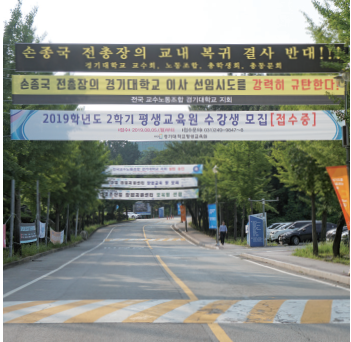 Have you heard the saying, “A nation that forgets its past has no future”? This saying has been critical for Koreans and it has frequently been quoted. History is essential because there will be a better future with fewer mistakes made by learning from history. In Korea, we often consider Japan when hearing this idea. Recently, there was anxious rumbling on campus that Mr. Son, the former president of Kyonggi University and a troublemaker, attended a board meeting. During his presidency, he disturbed the school by committing an irregularity, making unlawful college transfers, misusing school funds and violently suppressing dissent. Until he was sentenced to probation for his deeds in 2004, all members of Kyonggi University had a hard time. Thus, his coming back must not be permitted for the well-being of all stakeholders. Students and other interested parties have tried to prevent him from returning to the school. In this article, the Pharos checks the reasons for all the opposition to his return and provides guidance about how to react to this issue.