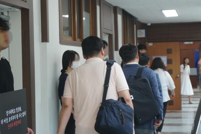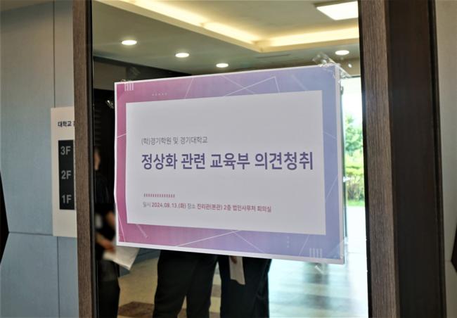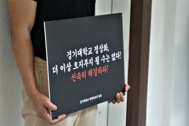The student representatives held this demonstration to express the students' demand for normalization to the Ministry of Education. Staff of the Ministry of Education have visited Kyonggi University to hear opinions from the university members. They entered the office of the board of directors at 1:38 p.m. Lee Yun-kyu, the president of Kyonggi University entered the office at 2:26 p.m.