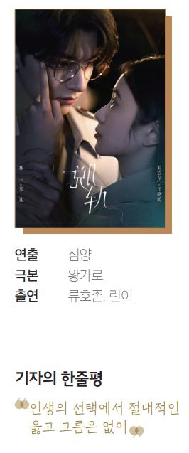 탈궤는 마지막화가 핵심이다. 위 대사는 모든 일을 겪은 뒤 장샤오위안과 치롄이 기찻길을 걸으며 나눈 대화다. 기찻길도, 인생도 멀리서 보면 안정적인 하나의 길로 뻗어 있다. 하지만 무심코한 선택으로 잠시 탈선할 수 있다. 그럼에 도 자신의 선택을 믿고 노력하면 다시 원래의 길로 되돌아올 수 있다. 10대의 마지막 문을 닫고 20대의 첫 걸음을 내딛은 대학생은 이제 막 사회에 나왔기에 대부분의 것들이 낯설다. 그럼에도 모든 선택들에 책임을 져야 한다. 모두 그 선택으로 인해 자신의 삶이 망가질까봐 두려워 회피하곤 한다. 하지만 잠시 벗어나도, 멈춰도 포기하지 않고 앞으로 나아가면 새로운 길은 또 생긴다. 그러니 탈선해도 괜찮다. 인생에는 온전한 옳고 그름이 없다. 자신이 결정한 선택에 대해 회피하지 않고 책임을 지면 언젠가 알맞은 길로 걸어가고 있는 본인을 발견할 테니.