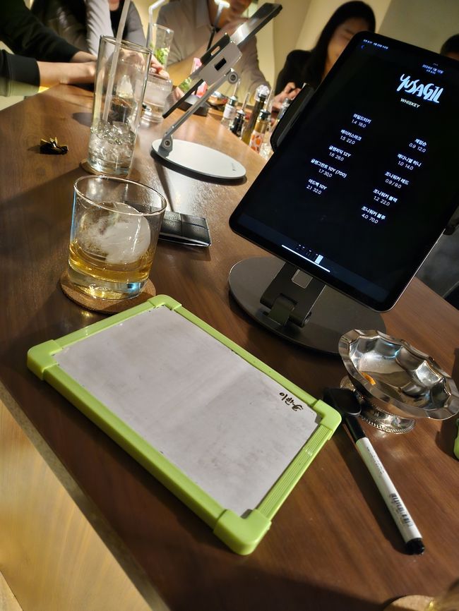 설렘을 품은 채 엘리베이터를 타고 올라가자 유사길의 문이 보였다. 초인종을 눌러야 문을 열어준다는 안내 문구에 긴장이 등줄기를 스쳤다. 떨리는 마음으로 초인종을 눌러 안으로 들어갔다. 내부에는 ‘ㄷ자’ 형태의 바 테이블이 있었고, 이미 몇 명의 사람들이 앉아 있었다. 서로를 힐끔거리며 차마 말을 걸지 못해 어색함만이 흘렀다. 오후 7시가 넘어 총 12명의 사람이 테이블에 둘러앉고 나서야 침묵은 사라지기 시작했다. 사람들은 각자 원하는 술을 주문하면서 옆 사람과 인사를 나눴다. 기자 역시 옆에 있던 다른 손님들과 스몰 토크를 주고 받았다. 또한 공통된 주제로 이곳에 왜 왔는지를 대화 나눌 수 있었다. 대부분이 ‘모르는 사람과 대화를 나누고 친해질 수 있다고 해 색다른 경험이 될 거 같아 왔다’고 답했다.
