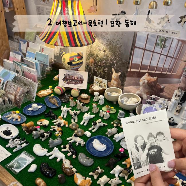 묵호가 유명해지는 이유 중 하나는 바로 ‘고양이’다. 바다 주변이라서 그런지 동네에 고양이가 많아 길, 가게 안에서도 쉽게 고양이를 볼 수 있다. 이러한 고양이와의 만남을 작게 소품으로 추억하고 싶다면 ‘묘한 동해’를 가보자. 이곳은 역과 가까운 곳에 위치한 고양이 테마의 소품샵이다. 안에는 고양이 △자석 △엽서 △키링 등 섬세한 소품들이 가득했다. 소품샵에는 작은 ‘영수증 사진기’가 있어 그 장소만의 추억을 영수증 사진 한 장으로 남길 수 있다. 이외에도 묵호 안에 있는 책방 등 여러 가게에서 영수증 사진을 통해 그곳의 순간을 추억할 수 있으니 방문한다면 한 번씩 찍어보자.