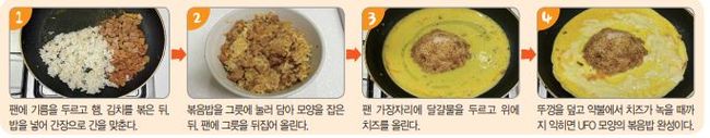하지만 아무리 다양한 재료를 넣어 만든 볶음밥이라도 금세 질리기 마련이다. 그렇다면 재료를 바꾸는 대신, ‘모양’을 바꿔보는 건 어떨까. 기자는 평범한 볶음밥이 지겨워질 때쯤, 색다른 재미를 더해주는 ‘UFO 볶음밥’을 만들어 먹는다. 이는 노란 달걀 지단과 고소한 치즈 위에 반구 모양의 볶음밥을 둥글게 올린 모습이 마치 우주선을 닮아 UFO 볶음밥이라 불리기 시작했다. 한 입 먹어보면 달걀과 치즈가 볶음밥의 풍미를 한층 끌어올려 단순한 볶음밥에서 눈과 입이 즐거운 음식으로 변신한다. 일반적인 볶음밥에 질렸다면 색다른 볶음밥으로 심심했던 밥상에 생기를 불어넣어 보자.