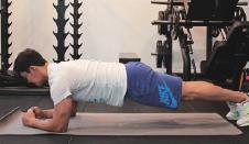 ② Straighten your knee and make your body straight. Use your elbows and feet to hold your body off the floor for 30 seconds - 1 minute.